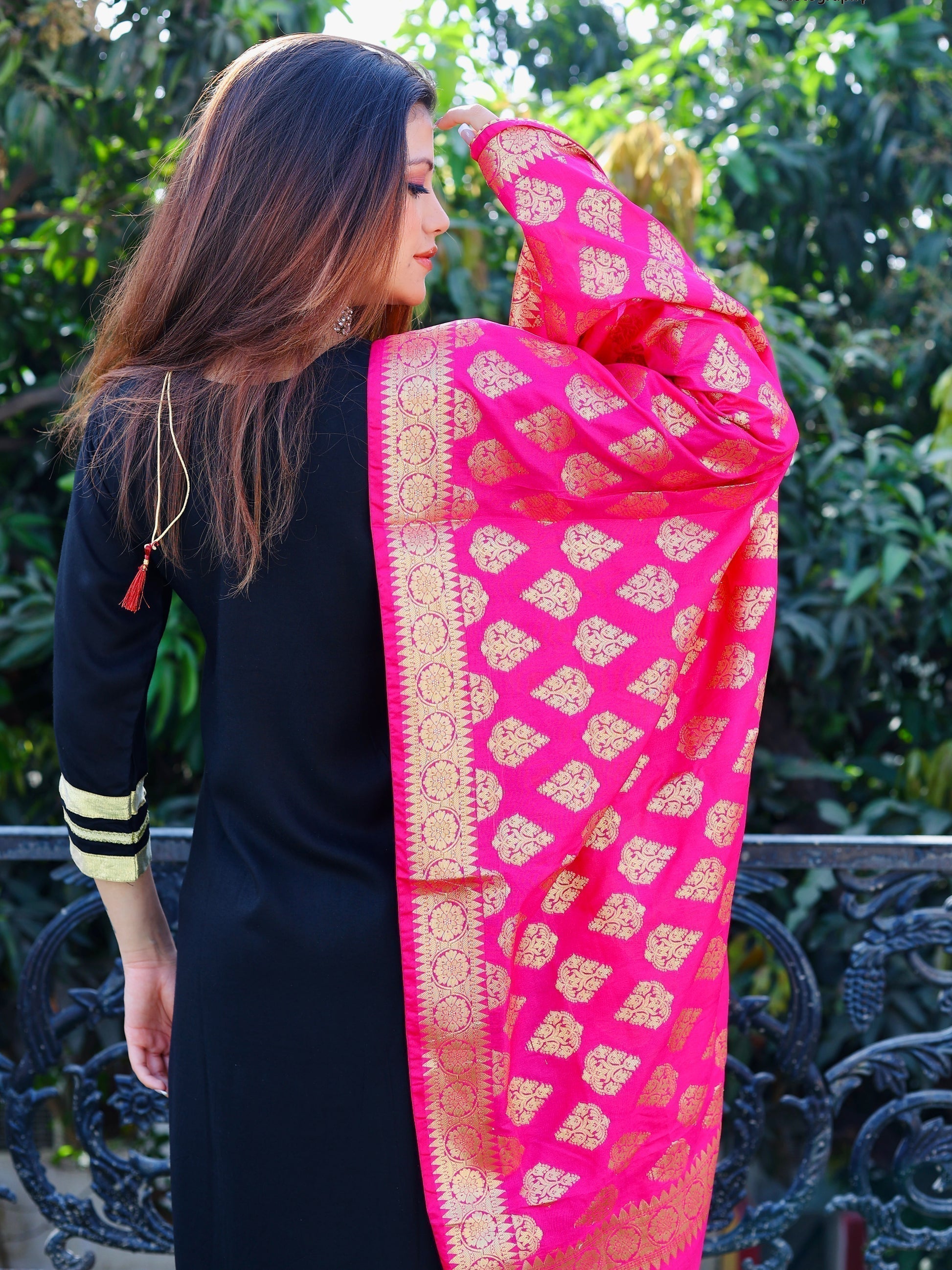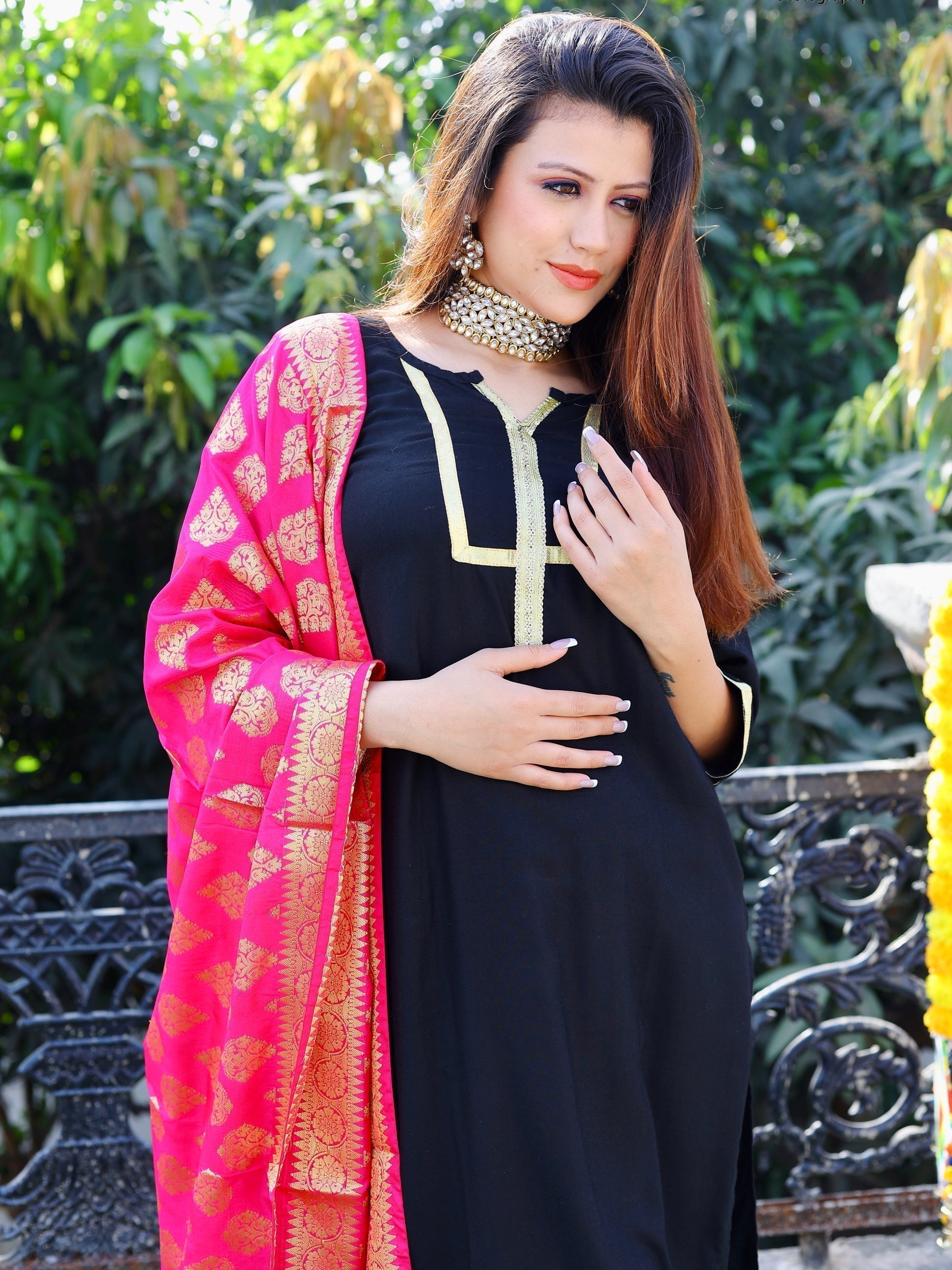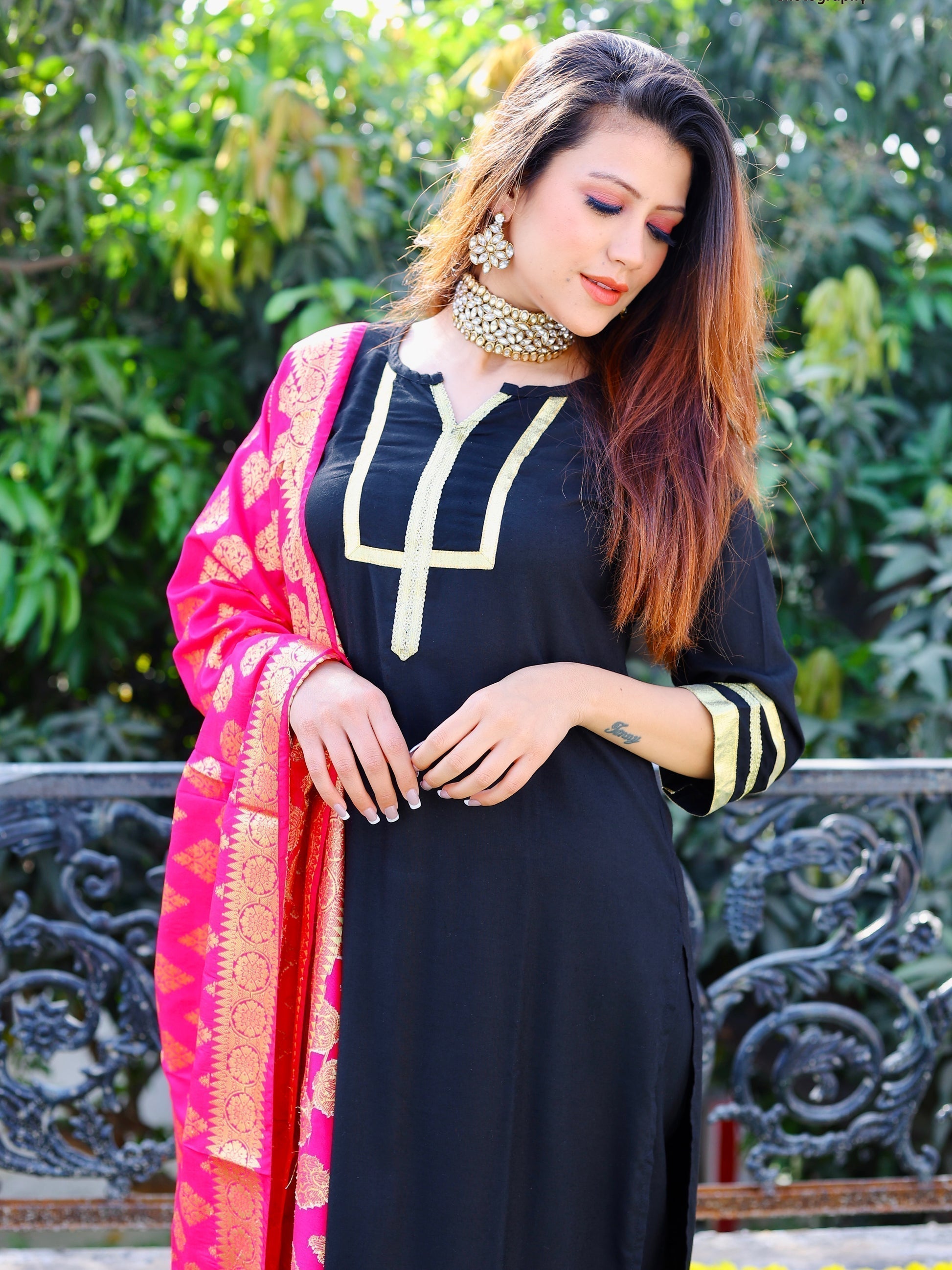 Light, bright, and full of life, this suit set will make a delightful addition to your wardrobe. Tailored with flowy silhouettes with classic golden prints, it is spruced up with a trendy fit.