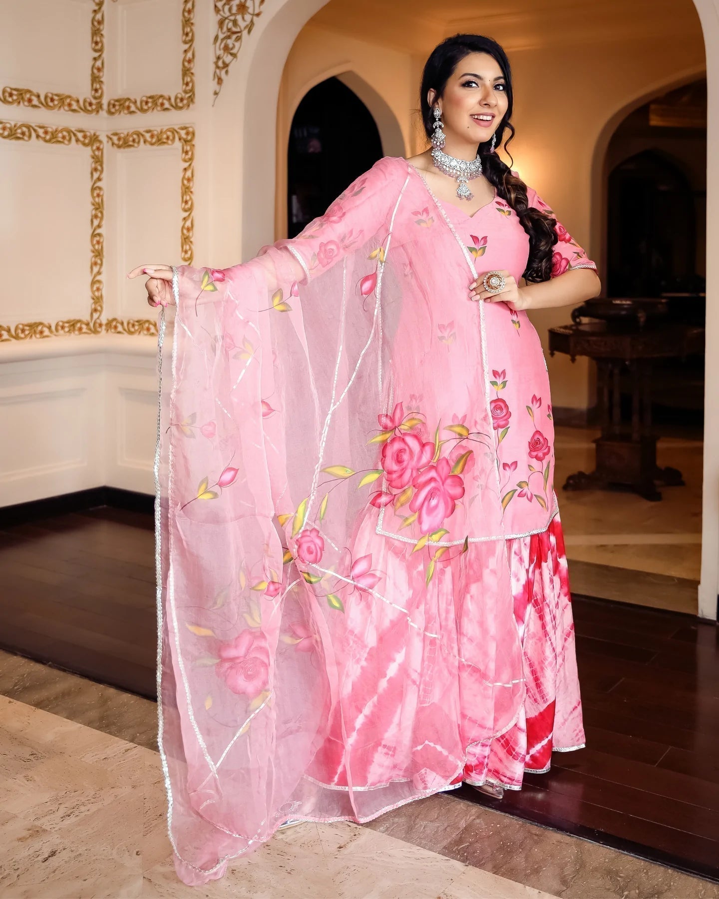 Light, bright, and full of life, this suit set will make a delightful addition to your wardrobe. Tailored with flowy silhouettes with classic golden prints, it is spruced up with a trendy fit.